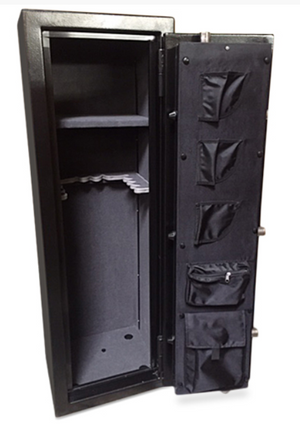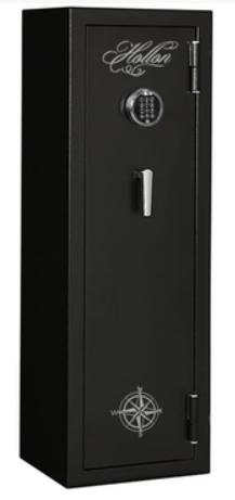 Hollon Safe proudly introduces our new Hunter Series gun safe line. Each safe has a 45 minute fire rating at 1400 degrees and consists of 12 gauge steel on both the walls and the door. This means that the steel on our “entry level” gun safe is thicker than most of the gun safes found in the big box retail stores. Additionally, each Hunter Series gun safe includes up to twelve 1.25 inch locking bolts on all four sides for pry attack resistance.
